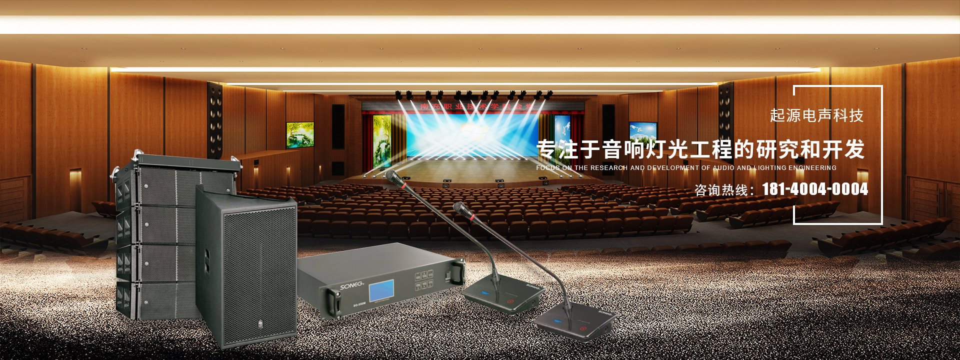 起源電聲科技專注于音響燈光工程的研究和開(kāi)發(fā),承接大型舞臺(tái)燈光音響系統(tǒng)、智能化會(huì)議音響系統(tǒng)、KTV音響工程、家庭影院、廣播工程